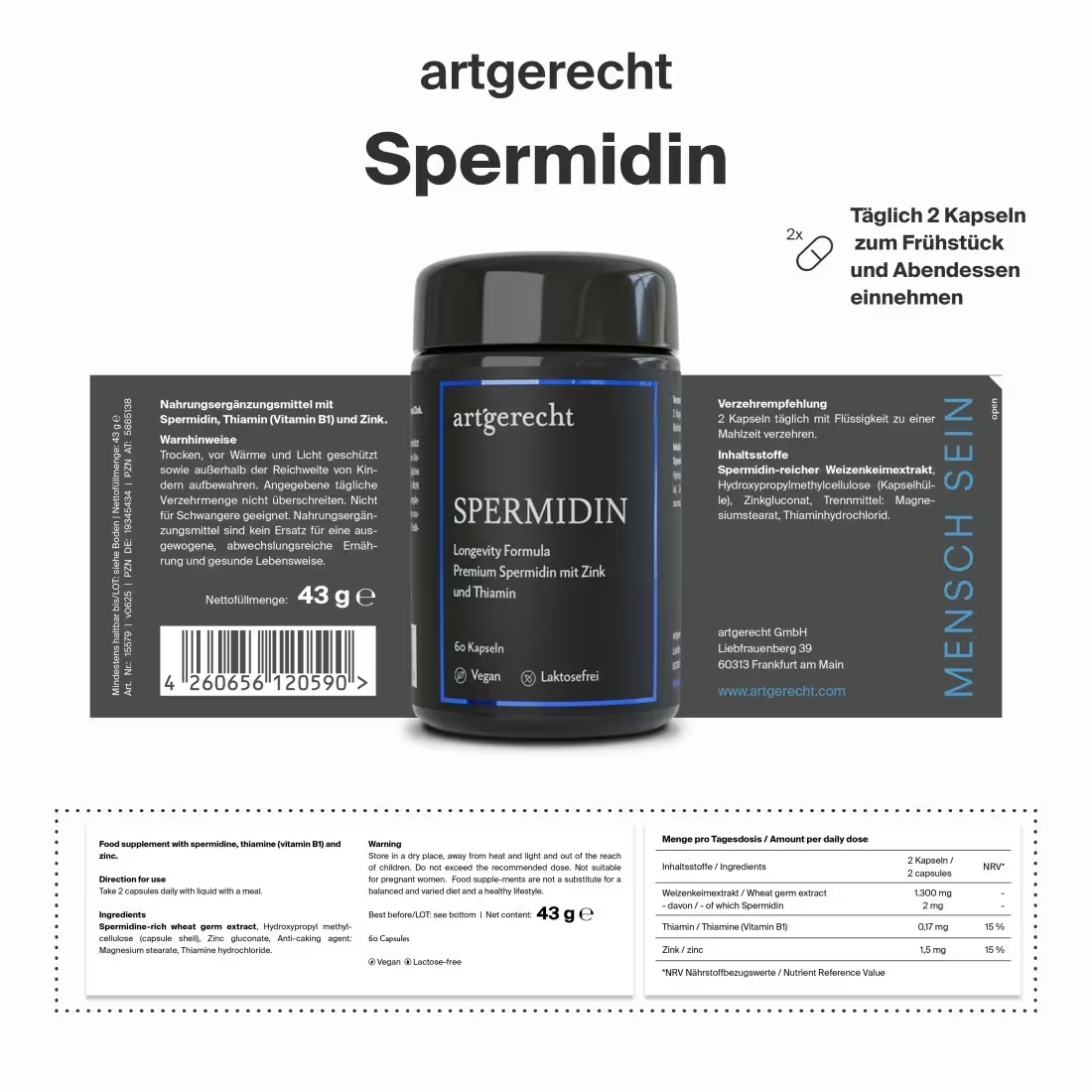 Informations sur les produits "artgerecht Spermidin Longevity 60 gélules"