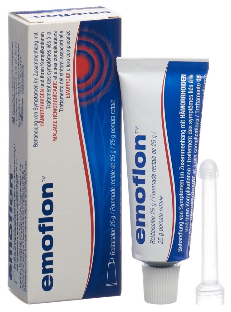 Emoflon pommade rectale 25G est une pommade rectale recommandée pour le traitement des symptômes liés à la maladie hémorroïdaire et à ses complications, comme z.B. eczéma, fissure anale, etc.
