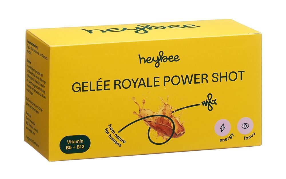Apportez de l'énergie et de la concentration dans votre vie quotidienne avec heybee Gelée Royale Power Shot - naturellement et efficacement.
